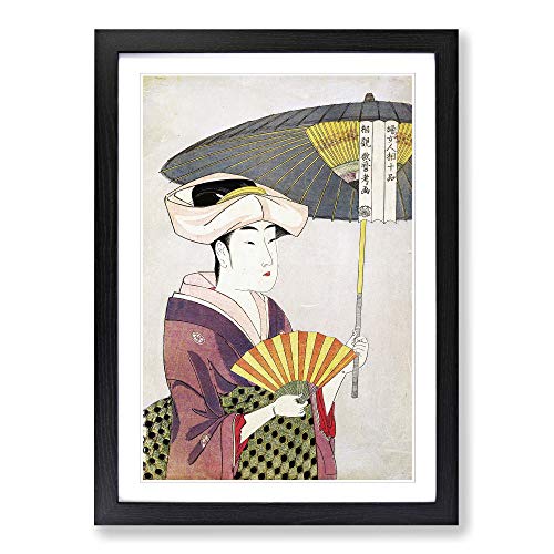 Big Box Art Woman with a Parasol by Kitagawa Utamaro Framed Wall Art Picture Print Ready to Hang, Black A2 (62 x 45 cm)