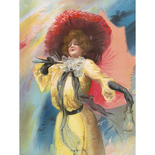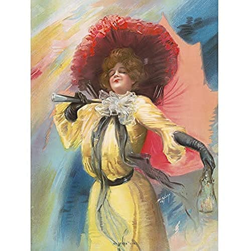 Artery8 Fashionable Woman Red Hat Yellow Dress Parasol Painting Large Wall Art Poster Print Thick Paper 18X24 Inch