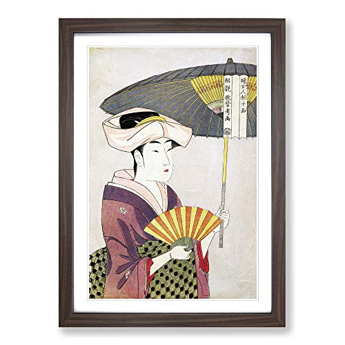 Big Box Art Woman with a Parasol by Kitagawa Utamaro Framed Wall Art Picture Print Ready to Hang, Walnut A2 (62 x 45 cm)