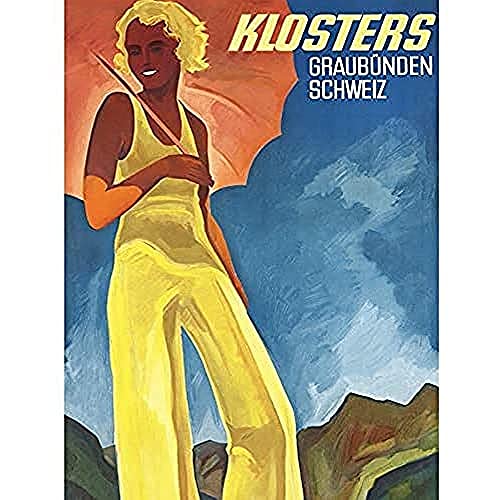 Klosters Switzerland Woman Parasol Travel Vintage Advert Large Print Poster Wall Art Decor Picture