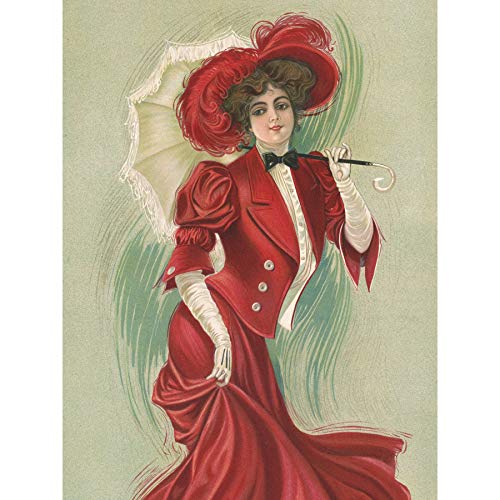 Artery8 Posing Woman Red Skirt Hat Dress Fashion Parasol Large Wall Art Poster Print Thick Paper 18X24 Inch