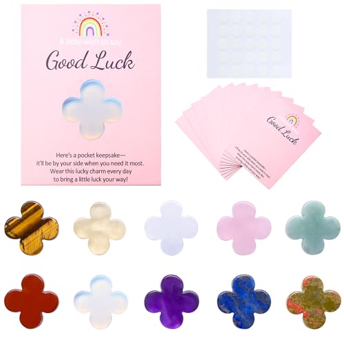 XIANNVXI Good Luck Clover Healing Crystals Stones Set Party Bag Fillers Pass the Parcel Prizes Prize Box Fillers for Teachers Party Favours Christmas Stocking Filler Good Luck Gifts 10 Pcs