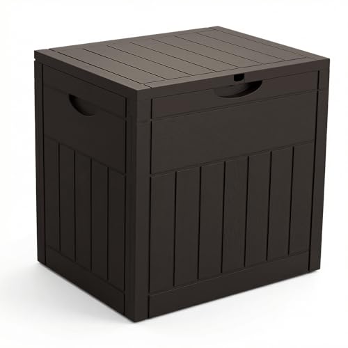 VOUNOT® 126L Outdoor Storage Box with Lid, Lockable Garden Storage Chest, Waterproof Plastic Deck Box for Cushions, Tools & Parcel Delivery, Brown