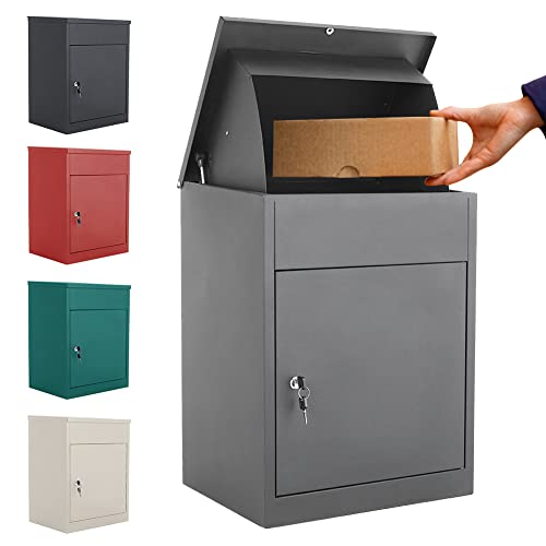 Large Parcel Box Outdoor Parcel Delivery Box Parcel Drop Box Metal Post Box for Internet Deliveries,Wall Mountable Weatherproof Sturdy Mailbox Home Porch - Atahome Ephesus (Anthracite)