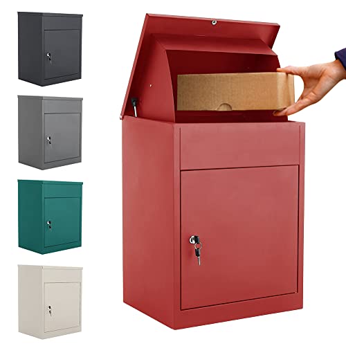 INMOZATA Parcel Box Outdoor Weatherproof Wall Mounted Delivery Box Smart Parcel Drop Box for Secure Multiple Large Delivery Packets & Mails Receiving (Red)