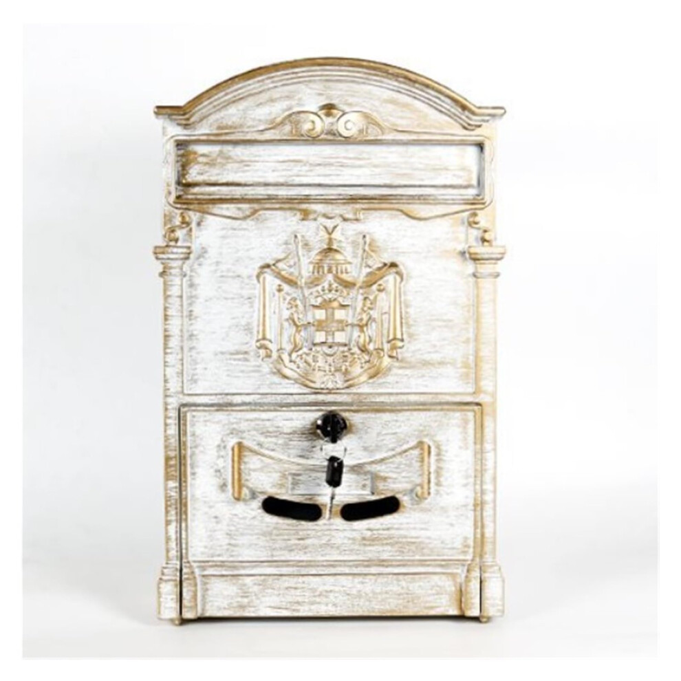 Letter Box 46cm Lockable Secure Parcel Delivery Box Vintage Metal Design in White Color