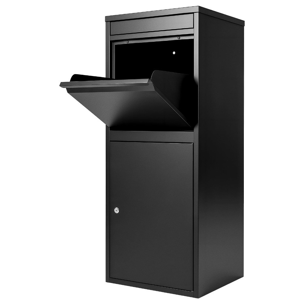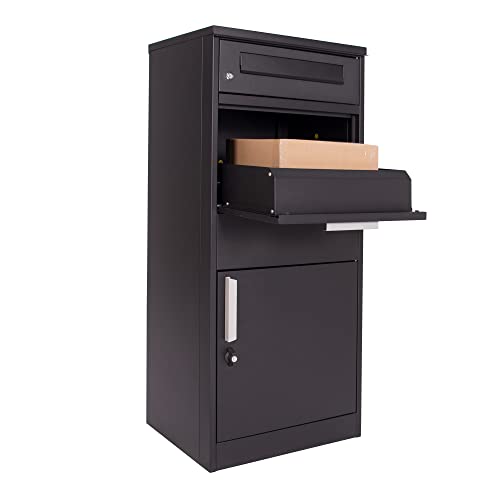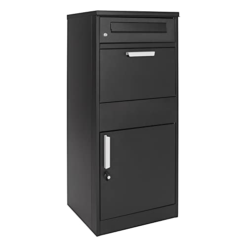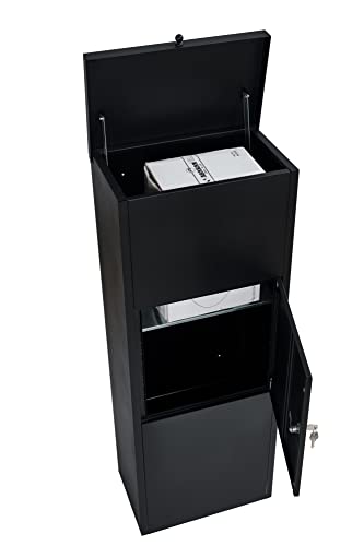 XPOtool Parcel Post Box Black 500 x 370 x 1120 mm Freestanding Letter Box, Two Lockable Compartments, With Set of 2 Keys, Ensures Easy Parcel Delivery at Home, Drop Box, Outdoor Mailbox