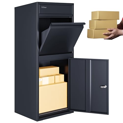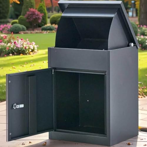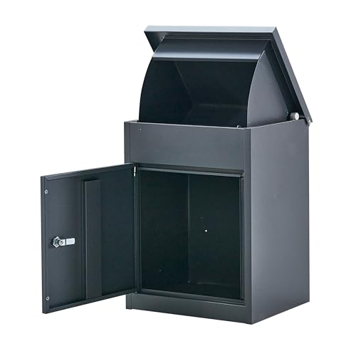 Package delivery box Drop Box for for Porch Curbside Package Delivery Boxes for outside Galvanized Steel Parcel Drop Box with Anti Theft Baffle, IPX3 Waterproof(Black)