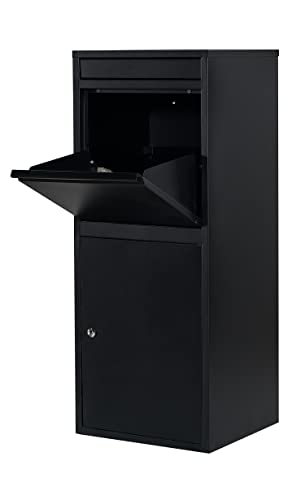 DWD® Premium Complete Steel Delivery Parcel & Letter Drop off Outdoor Large Secure Mail Package Parcel Lockable PostBox Waterproof Anti Theft Design,Fixings, Heavy Duty 28kg 37cm X 50cm X 115cm, Black