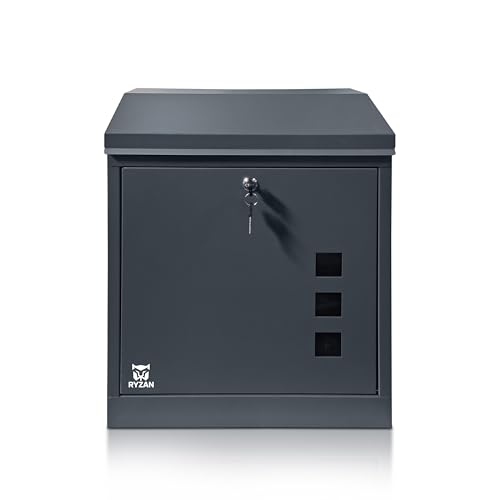 RYZAN Wall Mounted Parcel Box, Secure Black Delivery Box, Weatherproof Lockable Drop Box for Multiple Large Parcels, 52.2 x 43.4 x 25 cm