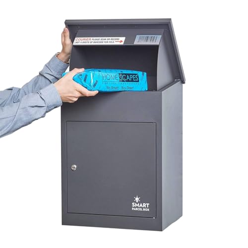Smart Parcel Box - Large Parcel Box Outdoor, Dark Grey Delivery Box with Secure Front & Rear Access, Waterproof, Durable, Lockable Weatherproof Parcel Drop Box For Multiple Packages