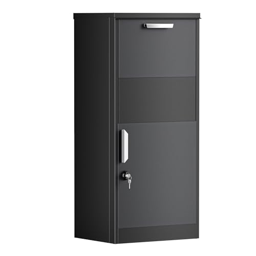 Large Parcel Box Outdoor Parcel Delivery Box Parcel Drop Box Metal Post Box for Internet Deliveries,Wall Mountable Weatherproof Sturdy Mailbox Home Porch - Atahome Ephesus (Black)