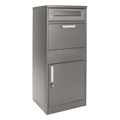 DWD® Wall/Floor Mounted Large Lockable Parcel Drop Box for Safe & Secure Multiple Internet Courier Deliveries of Large Delivery Packets Weatherproof Outdoor Delivery Box (Grey)