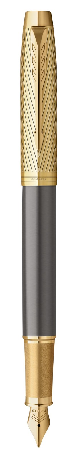 Parker IM Premium Fountain Pen | Brushed Metal with Gold Trims | Fine Nib | Black Ink | Gift Boxed
