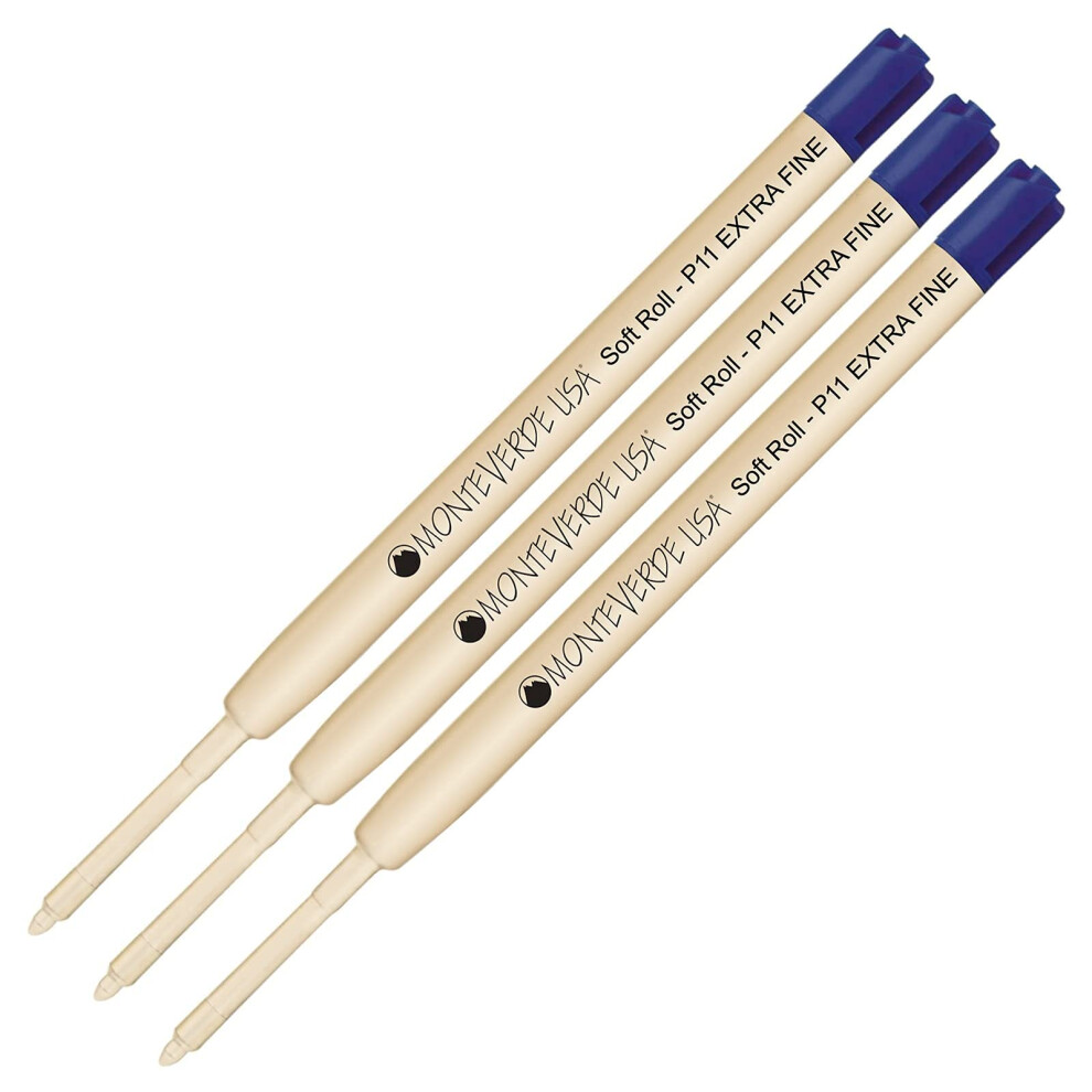 Lanier Combo Pack - 3 Pack - Monteverde Soft Roll Extra Fine Ballpoint P11 Paste Ink Refill Compatible with Most Parker Style Ballpoint Pens - Blue (E