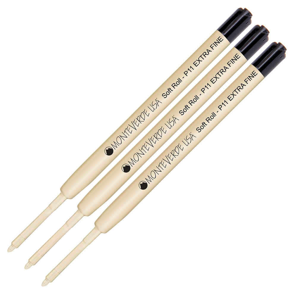 Lanier Combo Pack - 3 Pack - Monteverde Soft Roll Extra Fine Ballpoint P11 Paste Ink Refill Compatible with Most Parker Style Ballpoint Pens - Black (