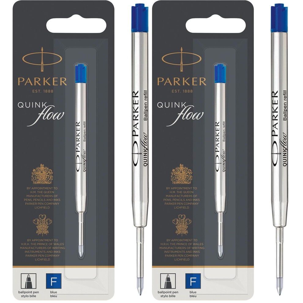 Parker Ballpoint Pen Ink Refill | Fine Tip | Blue QUINKflow Ink | 1 Count (Pack of 2)