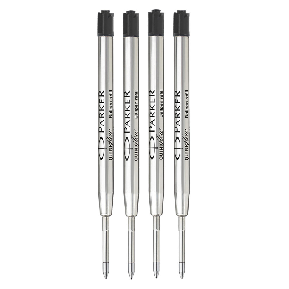 Parker Metal Ballpoint Pen Refills | Medium Point 0.7mm | Black QUINKflow Ink | Pack of 4
