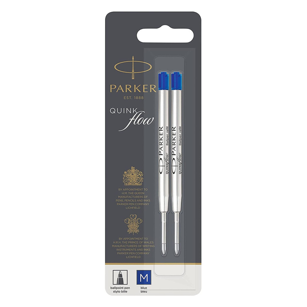 Parker Ballpoint Pen Refills | Medium Point | Blue QUINKflow Ink | 2 Count