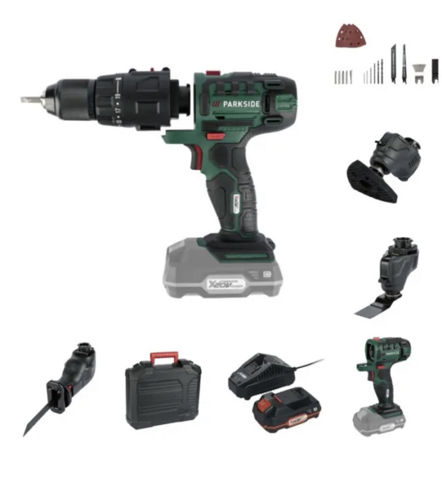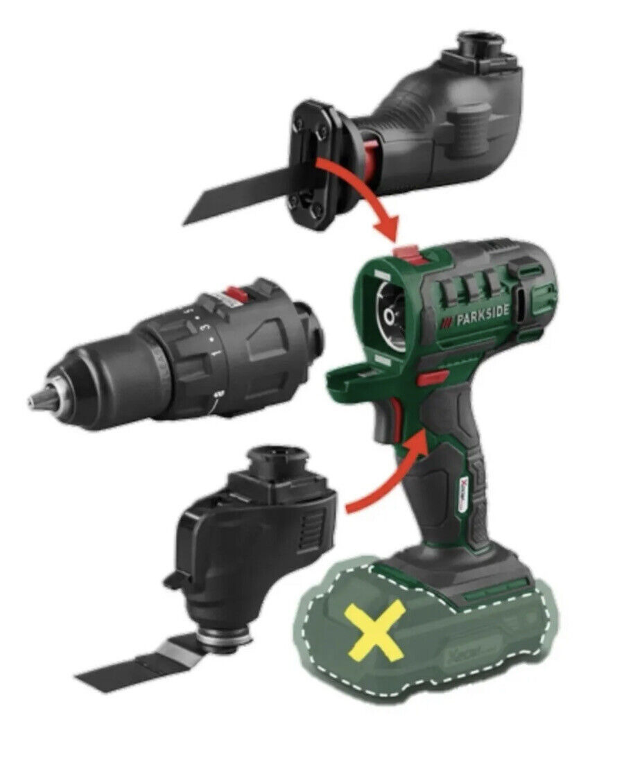 Playtive Parkside 20V Cordless 3in1 Multi Function Combi Tool Drill Sabre Saw Sander,3-in-1: Drill, Sabre Saw and Multi-Tool Withouth Battery and Charger