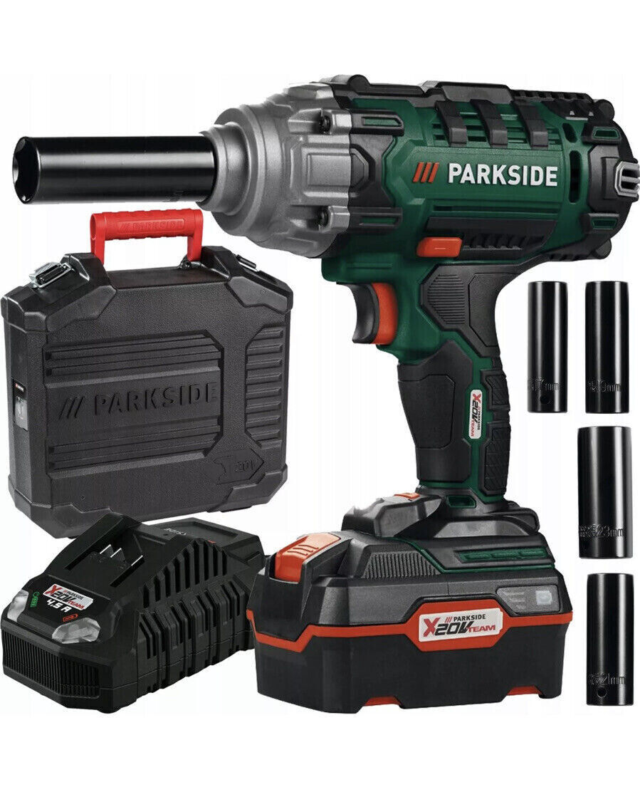 Parkside 20V Cordless Vehicle Impact Wrench + 4Ah Battery & Charger + 4 Sockets
