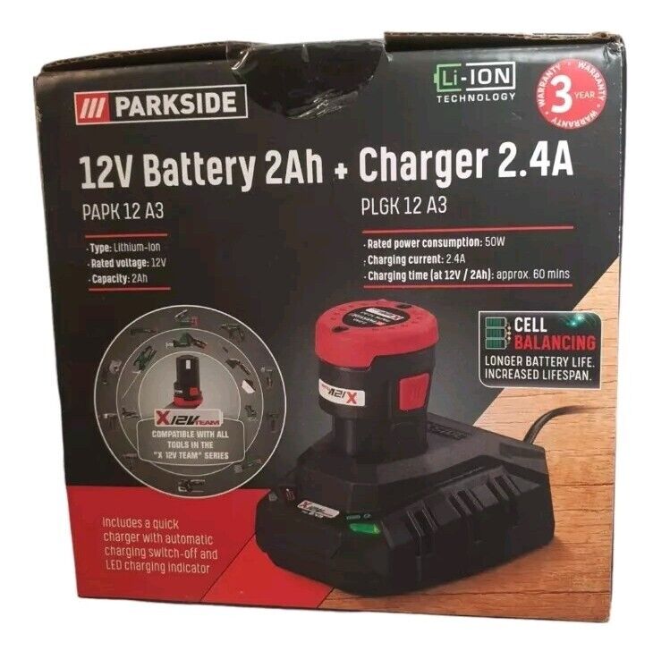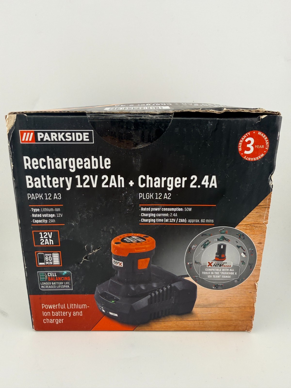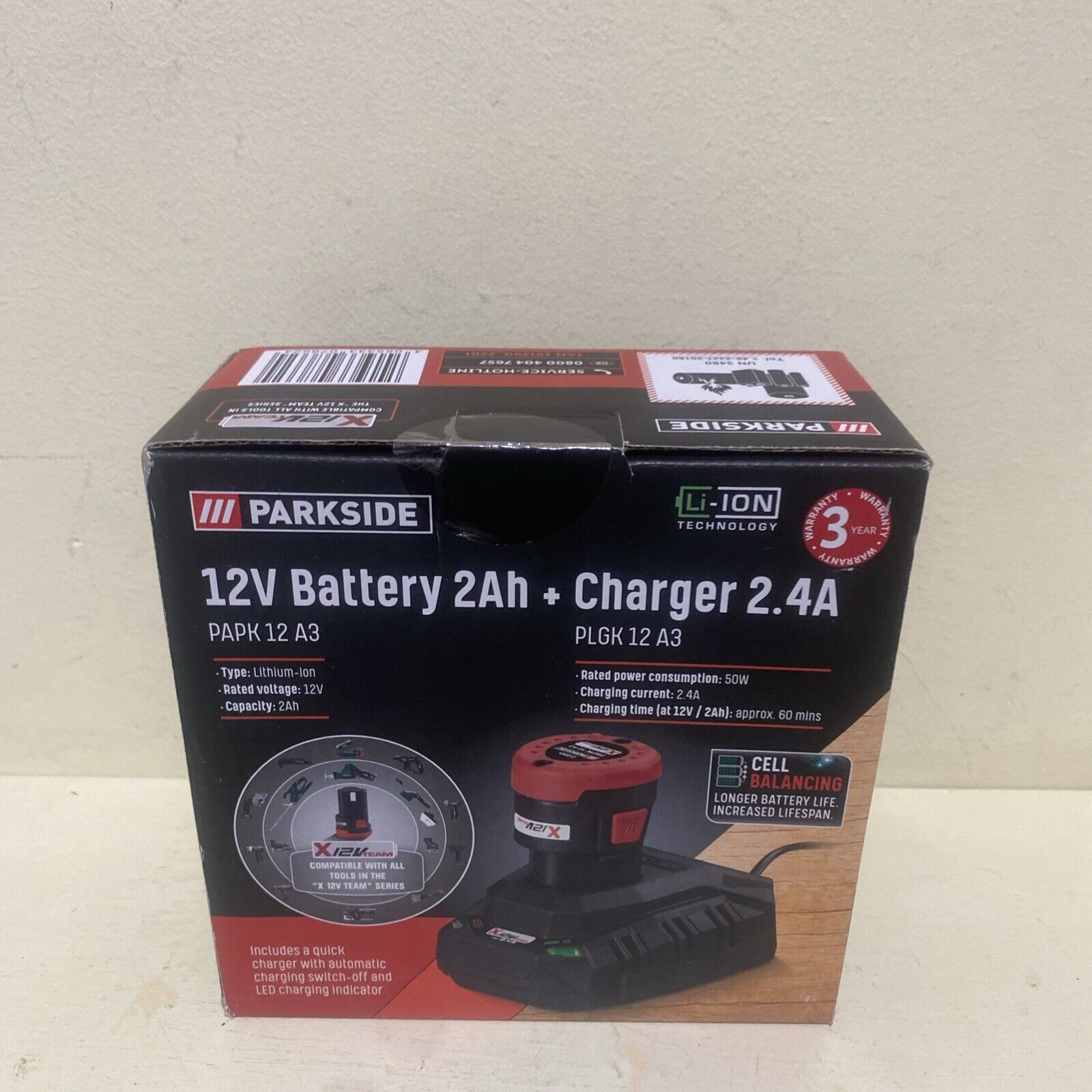 Parkside 12V 2Ah Battery PAPK 12 A3 & Charger 2.4A PLGK 12 A3 - GENUINE - NEW