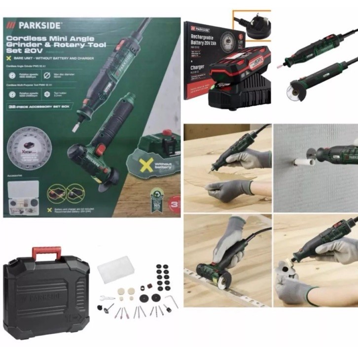 Parkside 20V Cordless Mini Angle Grinder & Rotary Tool Set +BATTERY AND CHARGER
