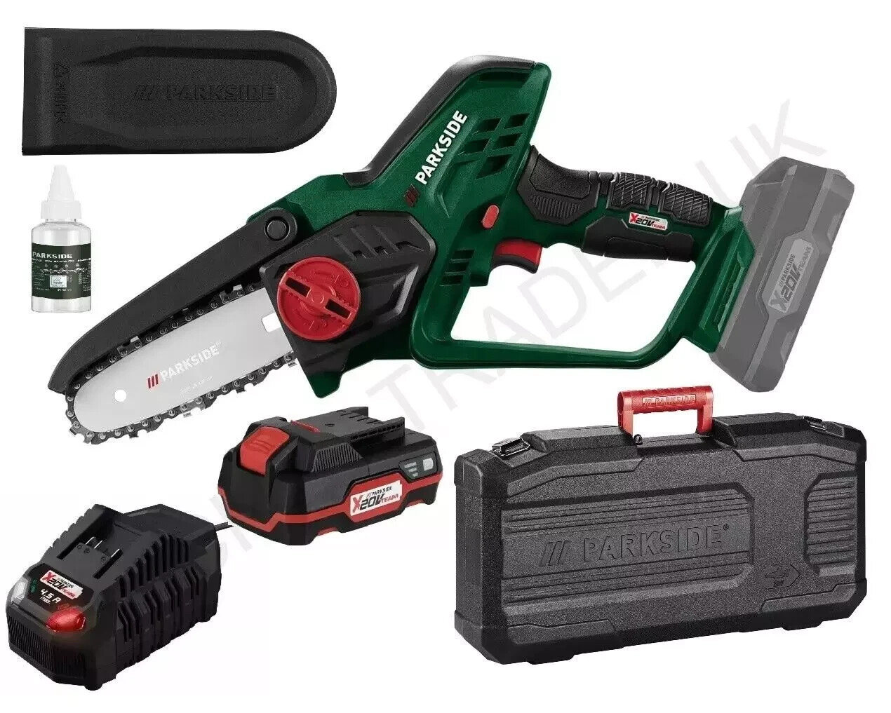 Parkside 20V Cordless Wood Cutter Saw Mini Chainsaw - With 2Ah Battery & Charger