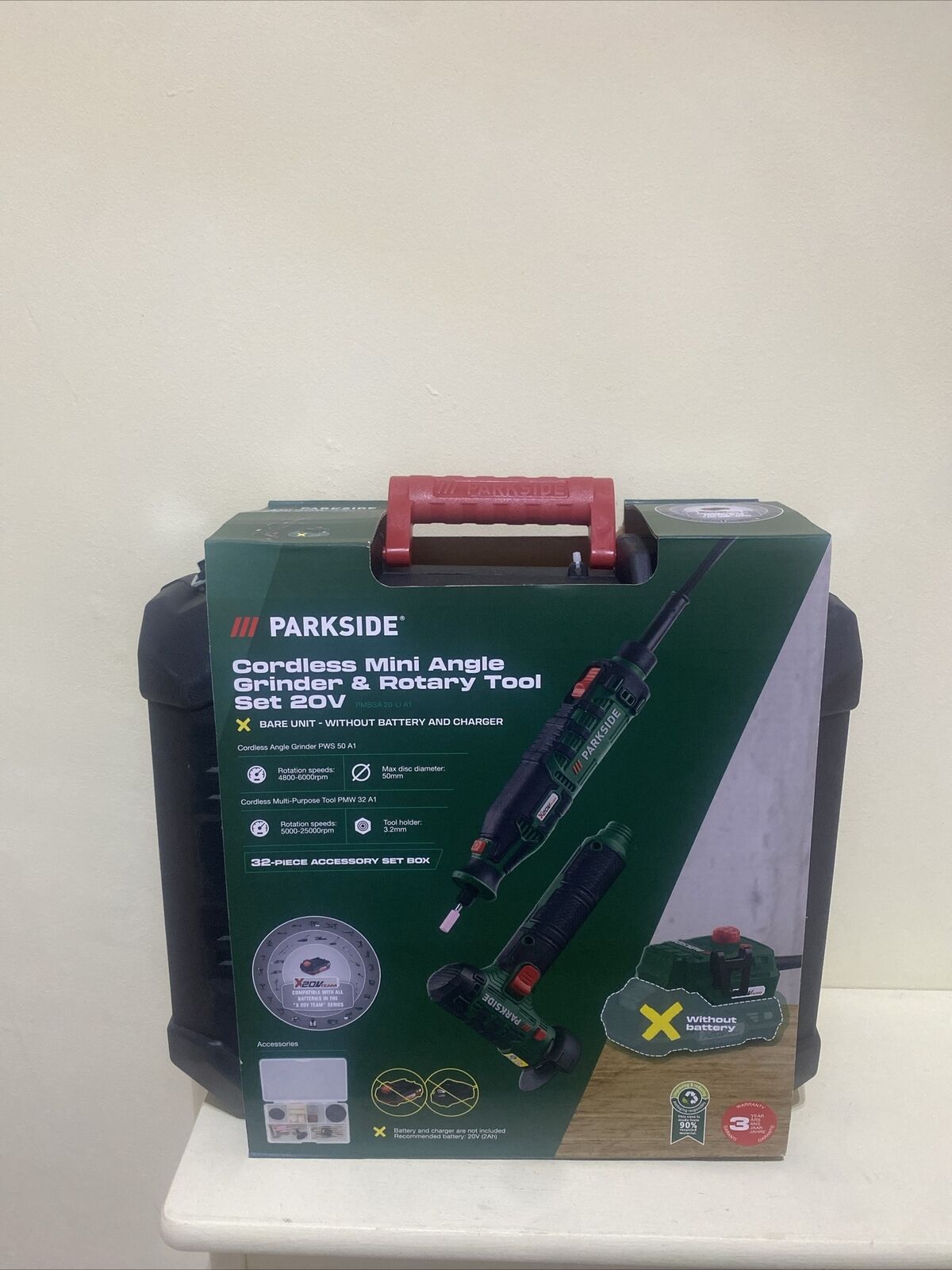 Parkside 20V Cordless Mini Angle Grinder Bare Unit Only & Rotary Tool Set PWS50A