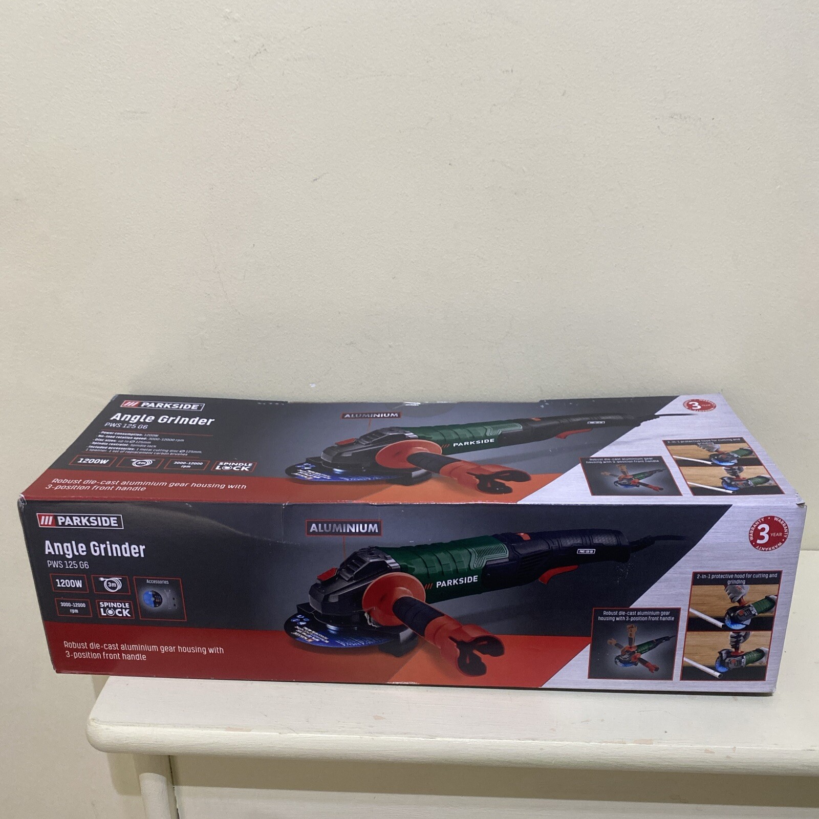 Parkside 1200W Angle Grinder Ø125mm Included Metal Cutting Disc Corded Electric