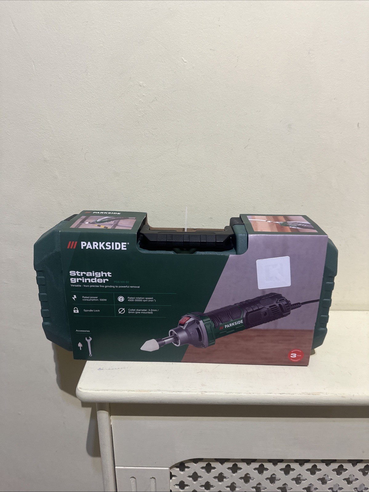 Parkside 500W Straight Die Grinder – 4,500–30,000rpm, 3.2/6mm Collets - New 2026