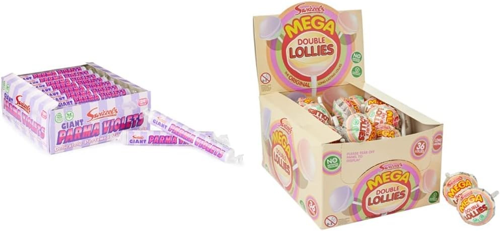 Swizzels Giant Parma Violets 24 Rolls (24 x 40 g) & Mega Double Lollies (36 Pie