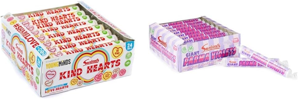 24 Rolls of Love Hearts/Parma Giant Violets/Fizzers by Swizzels (Parma Violets)