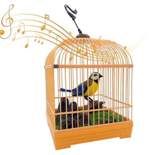 Grtheenumb Bird Cage Toys, Talking Bird Toy Singing Sound-Activated Toys for Kids Electric Moving Realistic Parrot in Cage with Light for Room