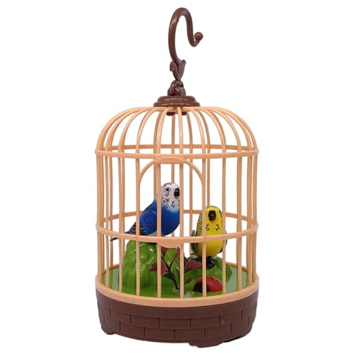 INSEOWI Battery Operated Singing Bird Realistic Birdcage Toy Natural Sound Interactive Cage Parrot Toy With Light Activated