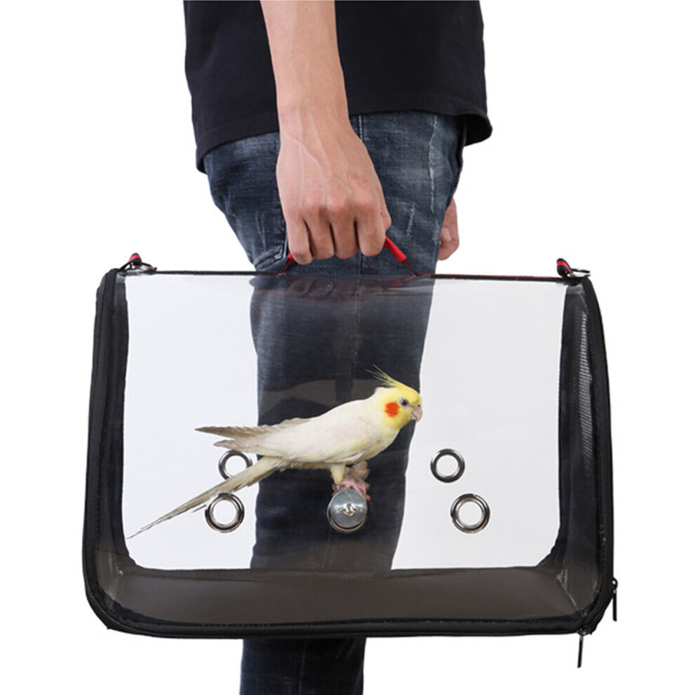 (Small) Youngshion Lightweight Transparent Bird Travel Carrier Portable Parrot Cage Handbag with Shoulder Strap and Wooden Perch