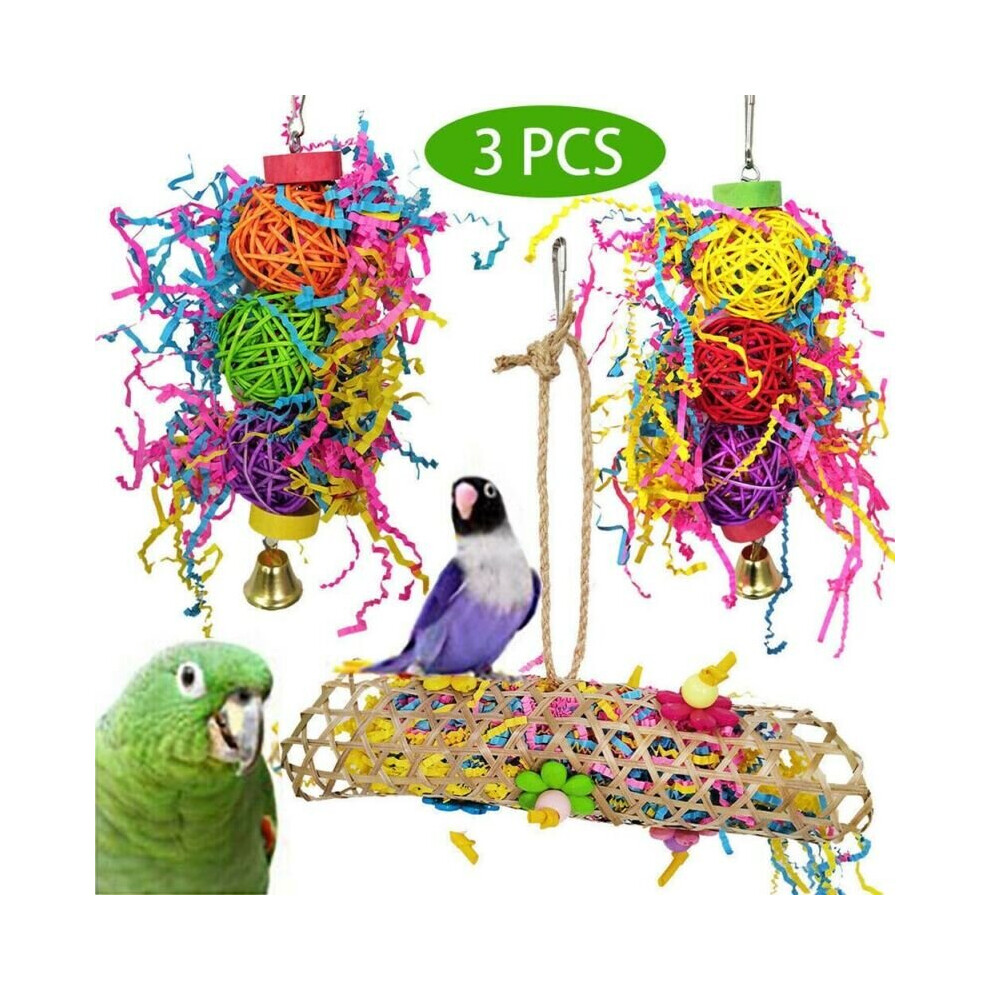 3 Pcs Parrot Bird Chew Cage Haging Woven Gass Foraging Strip Cockatiel Toys