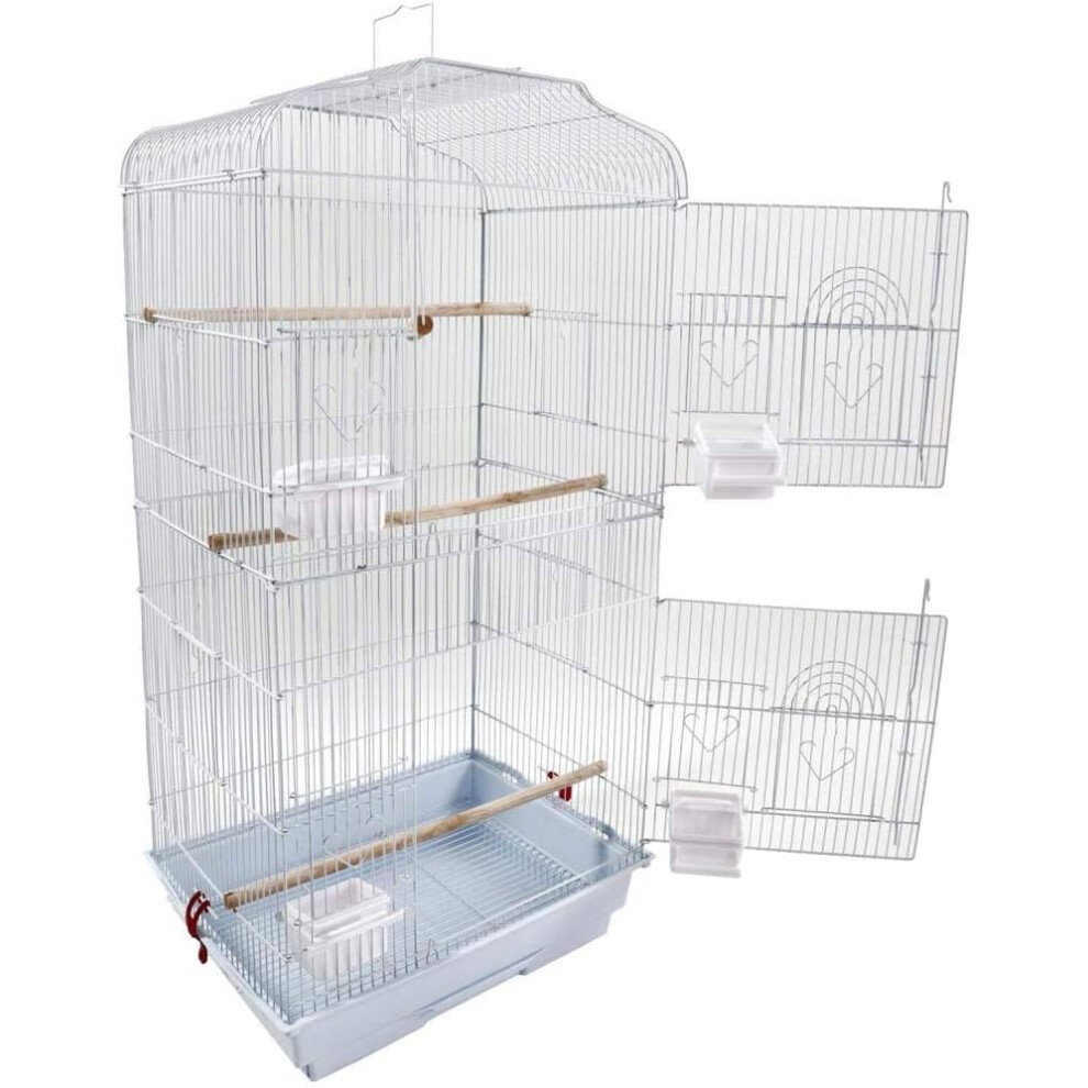 (White) 37" Rooftop Metal Large Bird Parrot Cage For Canary Budgie Cockatiel In 2 Colour
