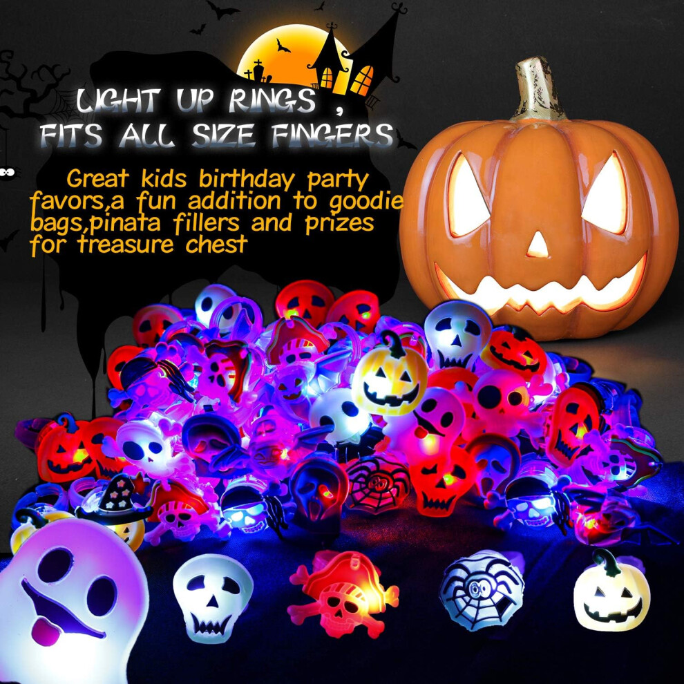 Glow In the Dark Ring Set, Trick or Treat Toys Prizes Goodie Bags Fillers Flashing Rings, Halloween Party Favors Light Up Party Supplies, Non Candy
