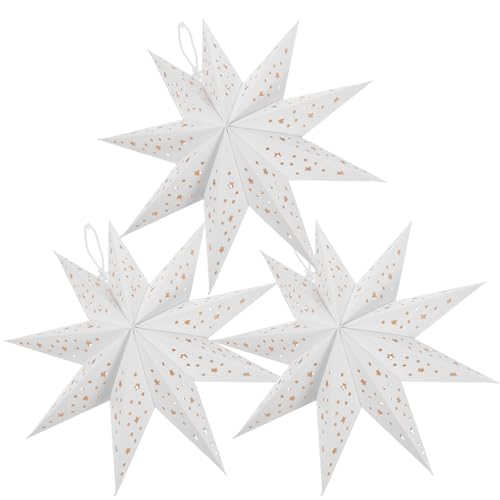 Tofficu 3pcs White Paper Star Lantern, 9 Pointed Lampshades Hanging Decorations Lamp, 13.7inch Paper Hanging Pendant for Christmas Outdoor Crafts New Year Wedding Party Ceiling Lights Home Decor