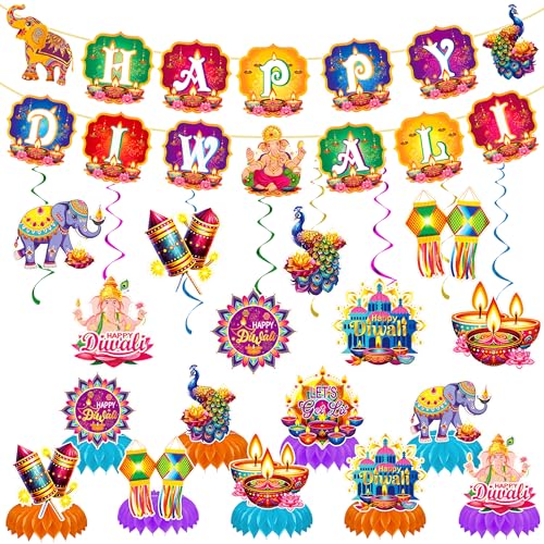 SUPJADE Diwali Decorations Diwali Banner Hanging Decor Honeycomb Diwali Table Decoration Festival of Lights Party Decorations for Deepavali Pooja Puja Wedding