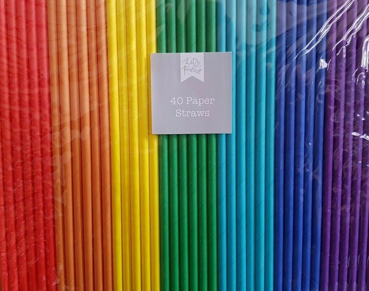 40 Pack of Rainbow Birthday Party Straws Pride Table Decorations