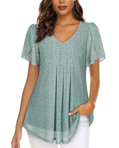 ACDAY Chiffon Blouses for Women Short Sleeve Tunic Tops for Womens Dressy Casual Flowy Top Ladies Summer Tops Double Layered Party Tops for Women Trendy Shirts