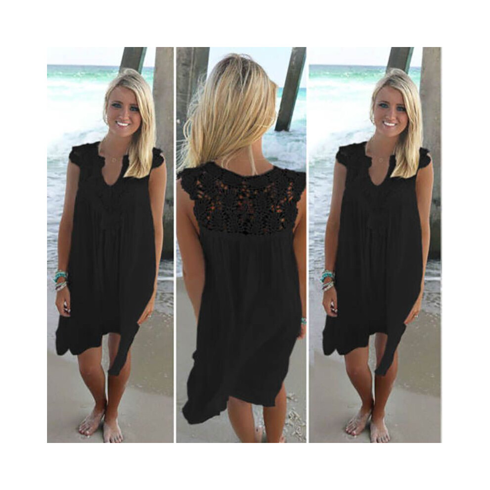 (Black, 3XL) Plus Lady Size Boho Sleeveless Party Tops Women Loose Summer Dress Beach Lace