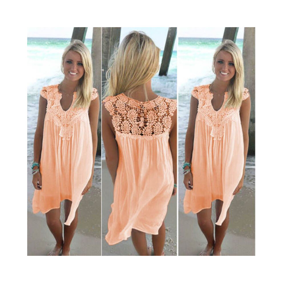 (Orange, L) Size Plus Lady Boho Sleeveless Party Tops Women Loose Summer Beach Dress Lace