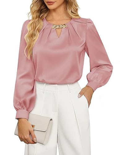JASAMBAC Party Tops for Women UK,Satin Blouse Long Sleeve Tops Silk Top Ladies Evening Top Going Out Shirts Office Wear for Work Party Business Rose Red