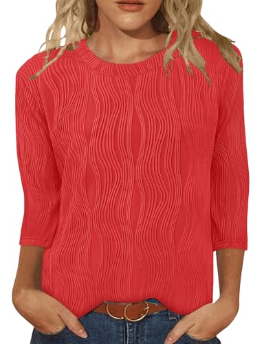 Gemulate Party Tops for Women UK Round wneck Woman Work Outfits 3/4 Sleeve Basic Tops Casual Blouses Trendy Dressy Christmas Tshirts Office Red S