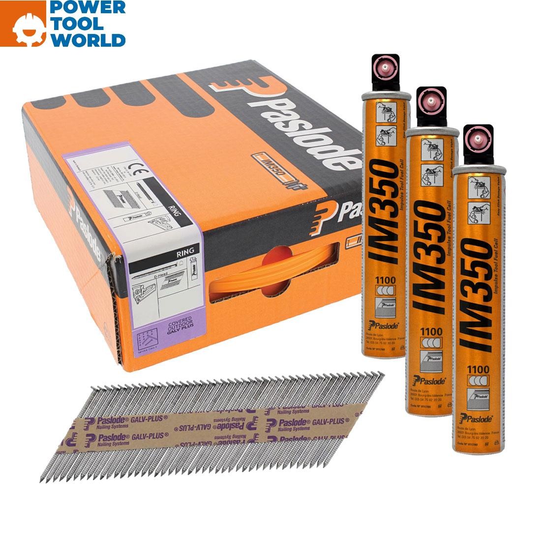 Paslode IM350+ Nails & Fuel Cells Trade Pack Plain Shank Galvanised + - 3.1 x