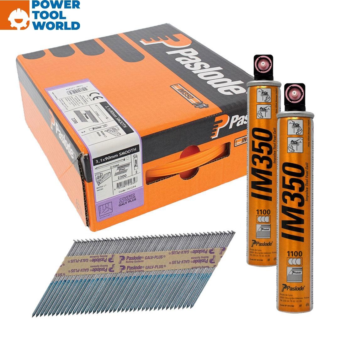 Paslode - IM350+ Nails & Fuel Cells - 141236 (Size 3.1 x 90/2CFC - 2200 Pcs)