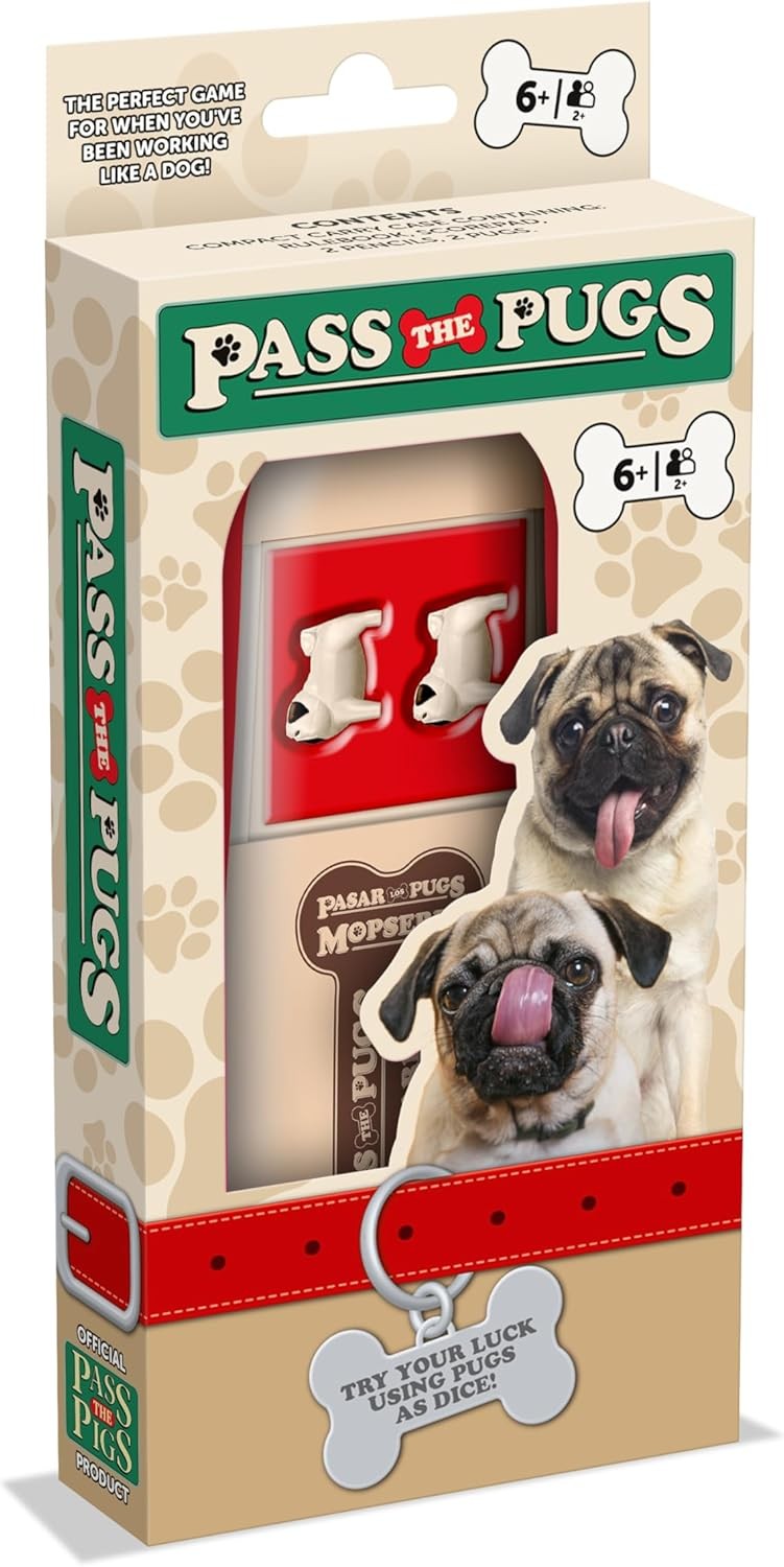Pass the Pugs Dice Game, the classic party and travel game, will you get a double faceplant or puppy love, first to 100 points wins, makes a great gift for ages 6 plus